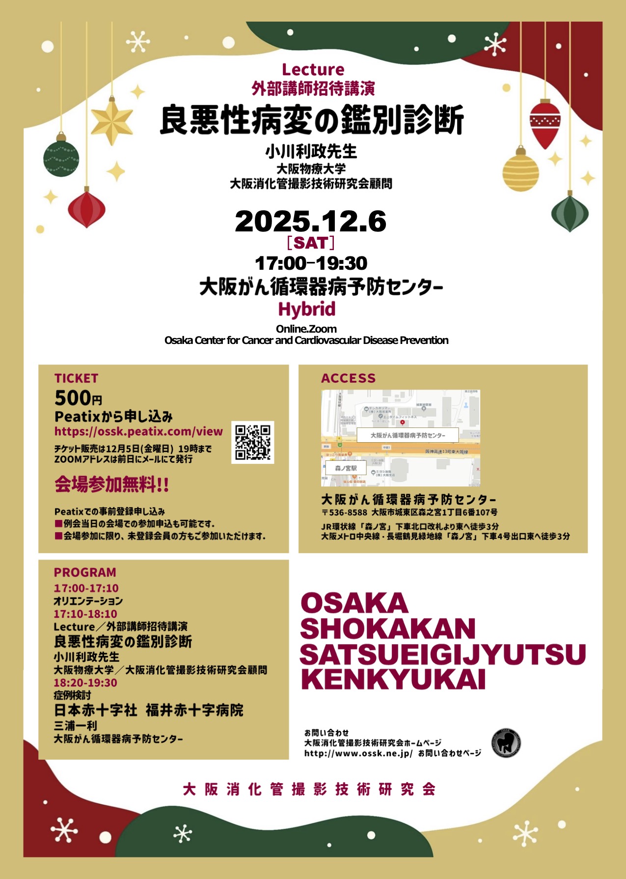 2025年12月6日(土)に大阪消化管撮影技術研究会【475回12月度例会on-line】が